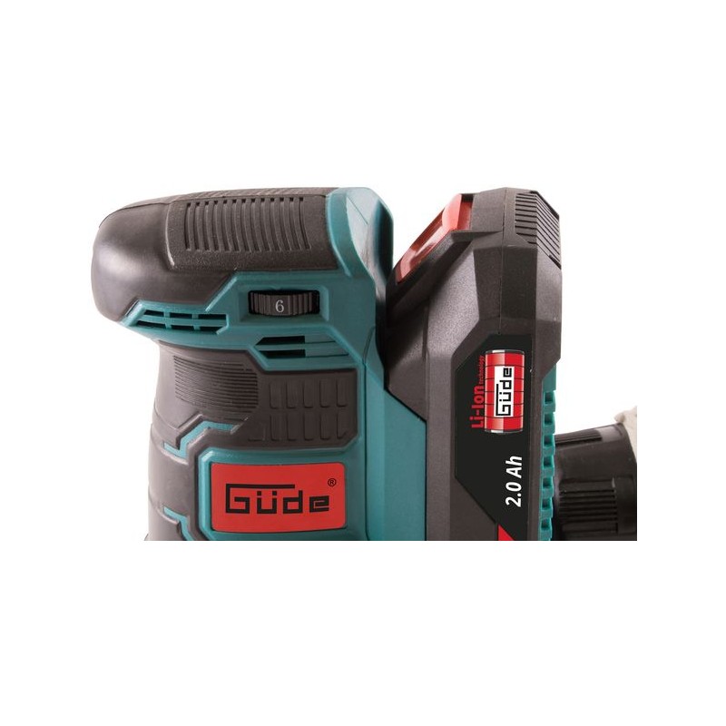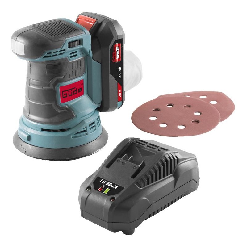 Akumulátorová excentrická brúska so silným a výkonným motorom, elektronická regulácia otáčok, oporný tanier so suchým zipsom pre rýchlu výmenu brúsneho papiera, protišmyková rukoväť Softgrip, signalizácia stavu nabitia. Vrátane batérie 2 Ah, rýchlonabíjačky 2,4 A, po 1 ks brúsneho papiera K120 a K400, zachytávacieho vrecka.