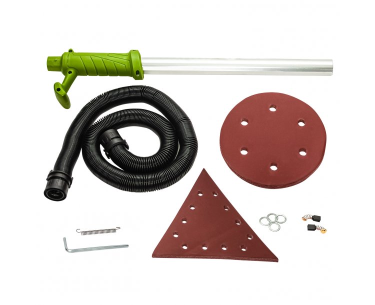 Brúska na sadrokartón Procraft EX750 je určená na brúsenie stropov, sadrokartónových stien a sadrokartónových dosiek. Uzáver na suchý zips umožňuje rýchlu výmenu brúsneho papiera. Brúsna hlava s priemerom 225 mm a výkonný 750 W motor umožňujú vysoký pracovný výkon. Dve hlavy, trojuholníková a okrúhla, zabezpečujú variabilné a všestranné použitie v neštandardných podmienkach. Súčasťou balenia je 6 brúsnych papierov pre okrúhlu hlavu a 6 pre trojuholníkovú hlavu so zrnitosťou od P80 do P240. Trojhranná hlava, flexibilná hadica, uhlíkové kefy , šesťhranný kľúč a prepravný kufrík. Kartónové balenie.