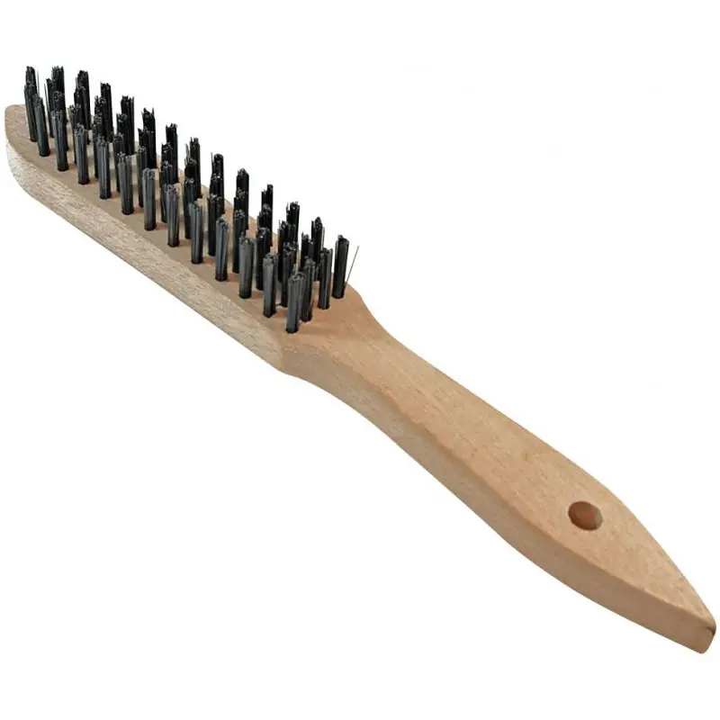 Drôtená kefa s drevenou rukoväťou na čistenie zvarov.