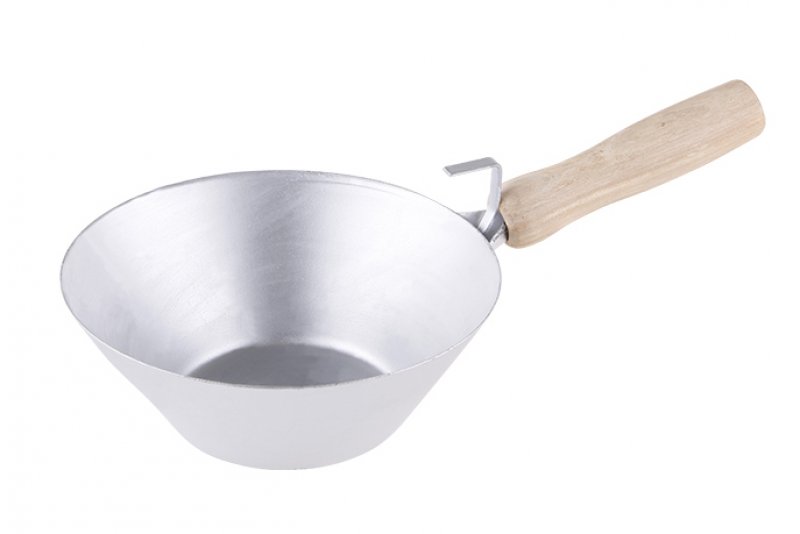 Murárska naberačka 180 mm s drevenou rúčkou as háčikom na zavesenie. Murárske náradie je používané na premiestňovanie stavebných hmôt: malta, betón atď.