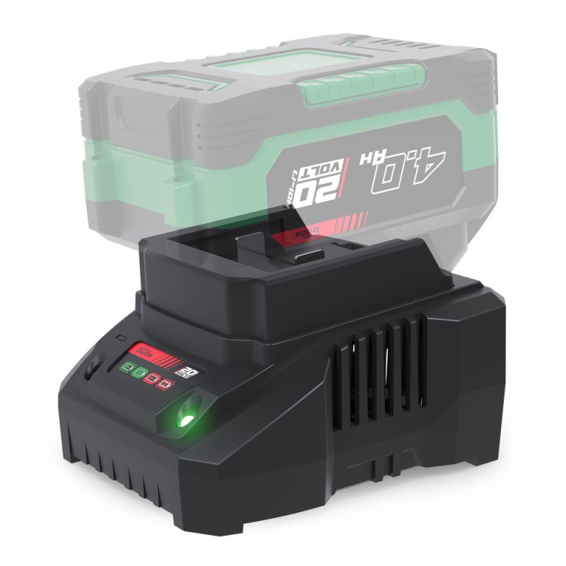 Výkonná nabíjačka 1,5 Ah pre akumulátorové náradie 20 V. Nabíjačka je vhodná pro Aku kosačku 320/20-4 (kód tovaru: 95850) a Akumulátor AP 20-40.2 pre aku kosačku 320/20-4 (kód tovaru: 95851).