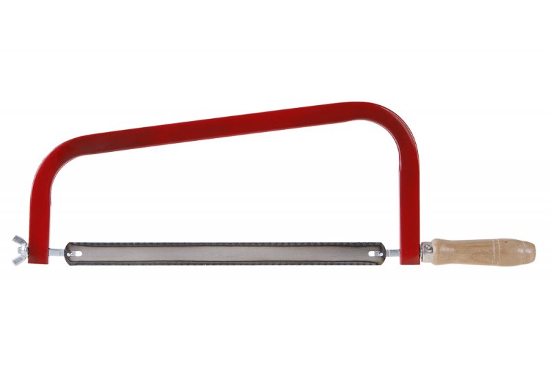 Kovový rám, lakovaná drevená rukoväť. Dĺžka plátku: 300mm.