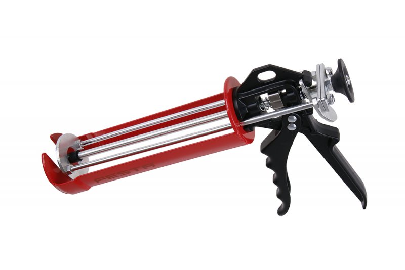 Vytláčacia pištoľ na chemické kotvy, špeciálna aplikačná pištoľ na vytláčanie chemických kotiev v balení s objemom 380ml, kvalitný zosilnený oceľový tlačný aj posuvný mechanizmus, odolná kovová ergonomická rúčka.