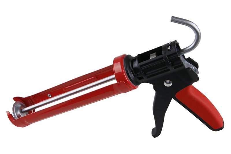 Vytlačovacia pištoľ FESTA, PROFI, kvalitný zosilnený oceľový rám aj výtlačný a pojazdový mechanizmus, rúčka z odolného plastu so soft-pogumovaním pre pohodlnú prácu, profilované kovové bočnice, tŕň na čistenie zaschnutého tmelu v špičke kartuše, použitie
