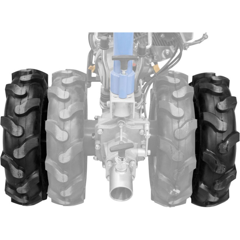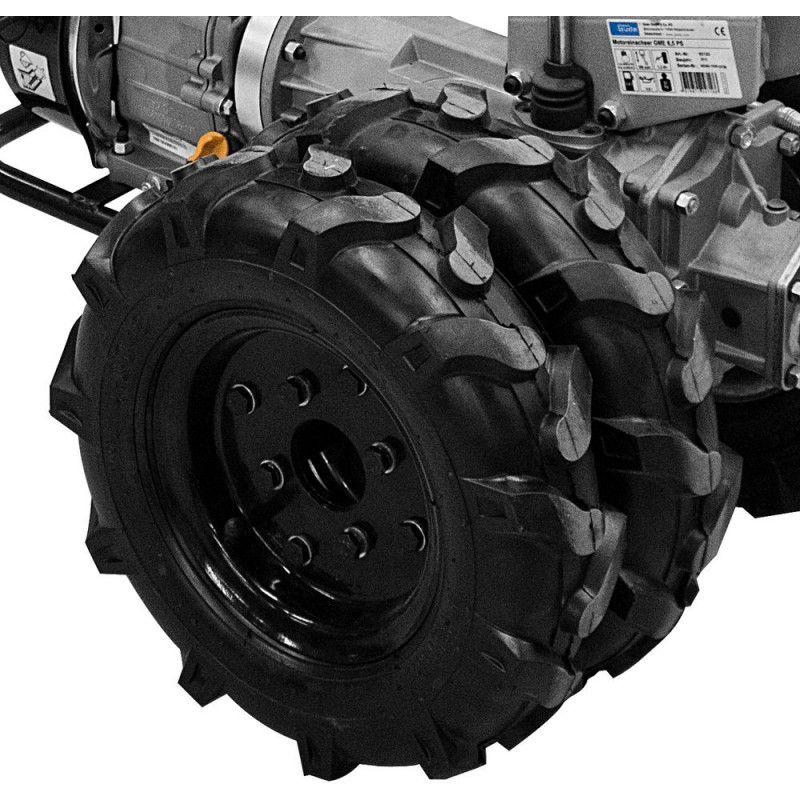 Prídavné kolesá určené na zvýšenie komfortu a stability malotraktora, rozchod kolies sa predĺži až na 620 mm (vonkajší). Vhodné k Univerzálnemu dvojkolesovému malotraktoru GME 6,5 V (kód tovaru: 95187) a Univerzálnemu dvojkolesovému malotraktoru GME 6,5 PS (kód tovaru: 95180). V balení 2 kolesá 4.00-8 a 2 ks adaptérov.