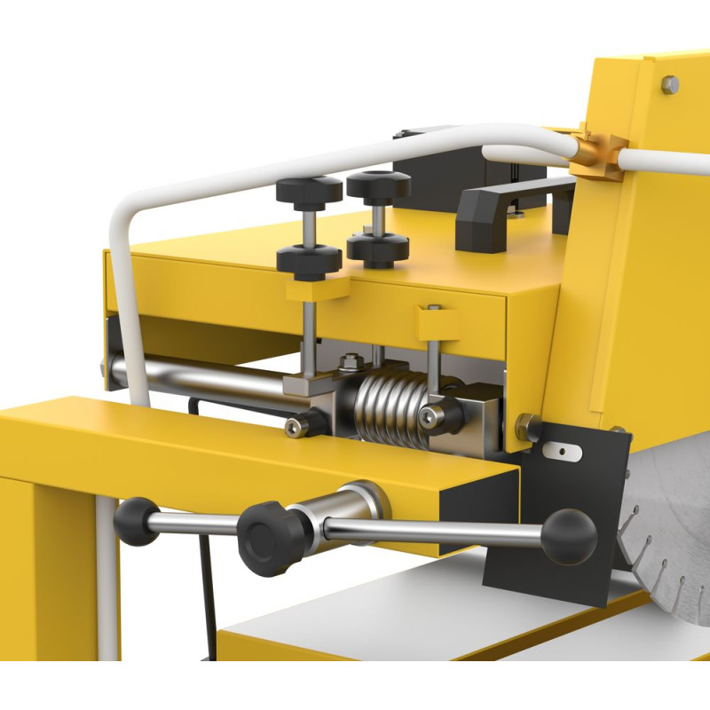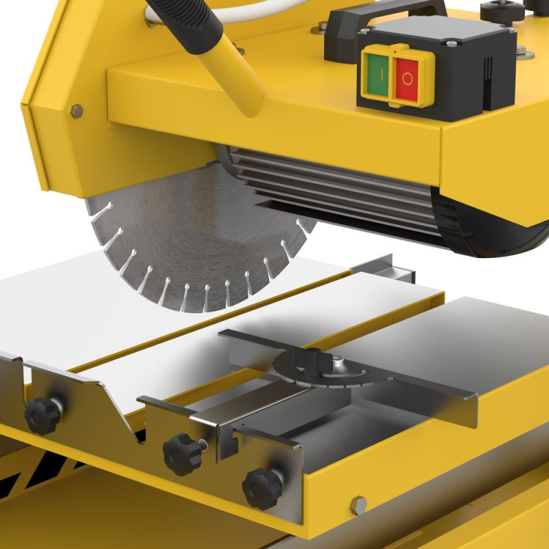 Všestranný a výkonný nástroj na presné rezanie rôznych materiálov, ako sú obrubníky a hlboké obrubníky, betónové materiály a dlažobné kocky, kamene. Hlavu možno otočiť až o 45°, umožňuje presné rezy v rôznych uhloch. Jemné nastavenie uhla rezu, pomocou excentrickej skrutky možno presne nastaviť uhol rezu. Podvozok s guľôčkovým ložiskom pre jednoduchú prepravu. Odpružené skladacie nožičky pre menší úložný priestor a zjednodušenie prepravy a skladovania. Zabudovaný osobný bezpečnostný spínač pre maximálnu bezpečnosť. Ochranný spínač proti preťaženiu a pozvoľný štart chráni stroj a zaisťuje bezpečnú prevádzku. Paralelný doraz umožňuje paralelné rezy až do šírky 210 mm. Maximálna hĺbka rezu 72 mm pri 45° a 115 mm pri 90°. Vďaka svojej robustnej konštrukcii a presným funkciám je rezačka ideálnou voľbou pre profesionálov aj domácich majstrov.
