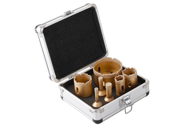 sada profesionálnych vŕtacích diamantových koruniek so stopkou pre presné a rýchle vŕtanie do kameňa, dlažby, obkladov, žuly, mramoru a iných extrémne tvrdých materiálov nielen v stavebníctve výška vrstvy diamantu 10 mm, dlhá životnosť kotunku je možné p