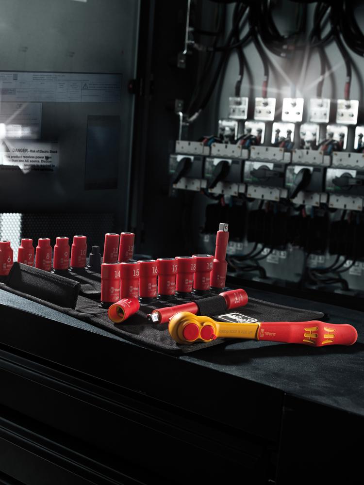 Vyhotovenie: Všetky nástroje majú izoláciu VDE do 1 000 V podľa normy IEC 60900. Račňa s jemným ozubením s 80 zubami pre krátky uhol návratu 4,5°. Mimoriadne úzka konštrukcia s mäkkou ergonomickou zónou úchopu na jednoduchú prácu aj vo veľmi stiesnených montážnych priestoroch. Optimálne držanie a ľahké vybratie vďaka otočnému mechanizmu upínača orecha. Dodáva sa v kompaktnom textilnom boxe.